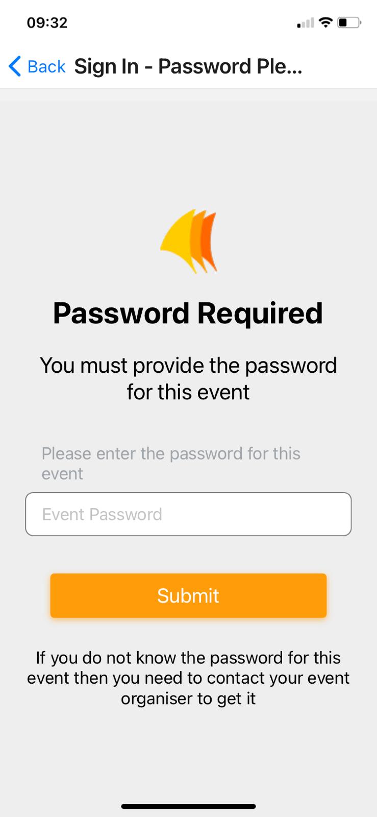 Entering the Access Code for the Event