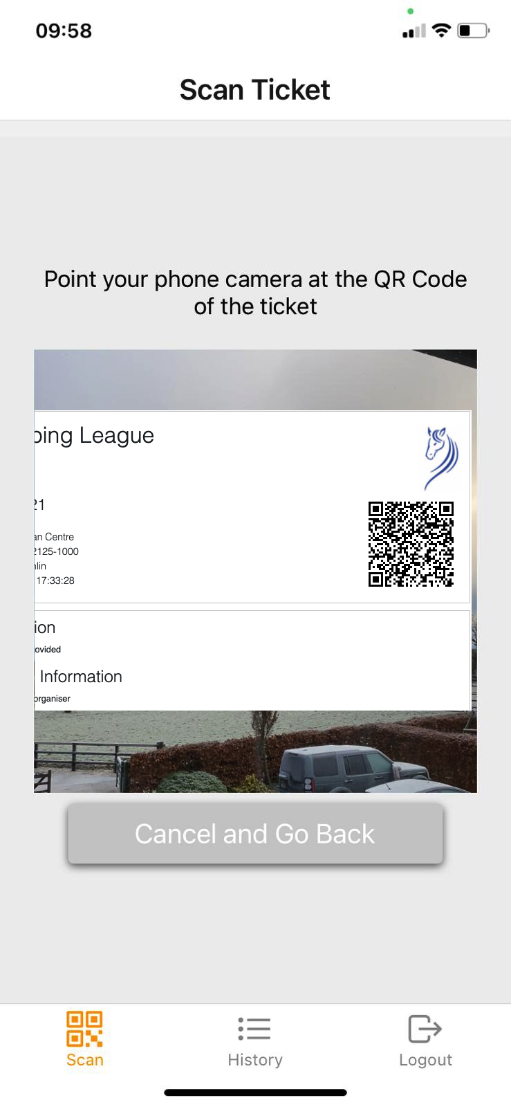 Point the Camera at the QR Code on the persons Ticket